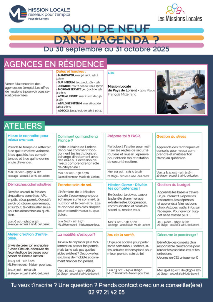 Le siège de la Mission Locale du Pays de Lorient reste ouvert pendant les vacances d’été (sauf jours fériés indiqués) aux horaires et jours habituels : 9h – 17h30.
